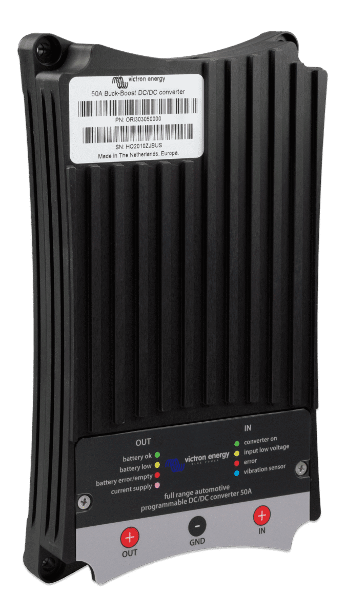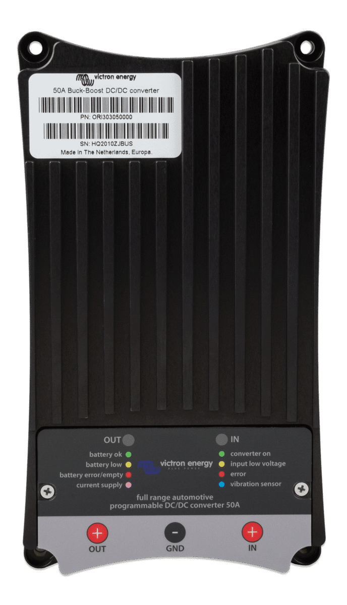 De Buck-Boost DC-DC Omvormer is een DC-DC omvormer voor het laden van een 12/24V service-accu in voertuigen met een intelligente dynamo. Doordat deze dynamo’s (aangestuurd door de voertuigelektronica bij Euro 5 en 6 motoren) met draaiende motor vaak niet een continu correcte laadspanning afgeven, is een DC-DC omvormer noodzakelijk om de service-accu goed te laden.