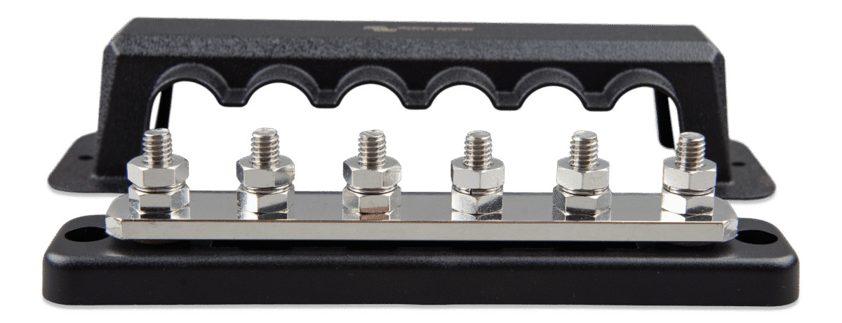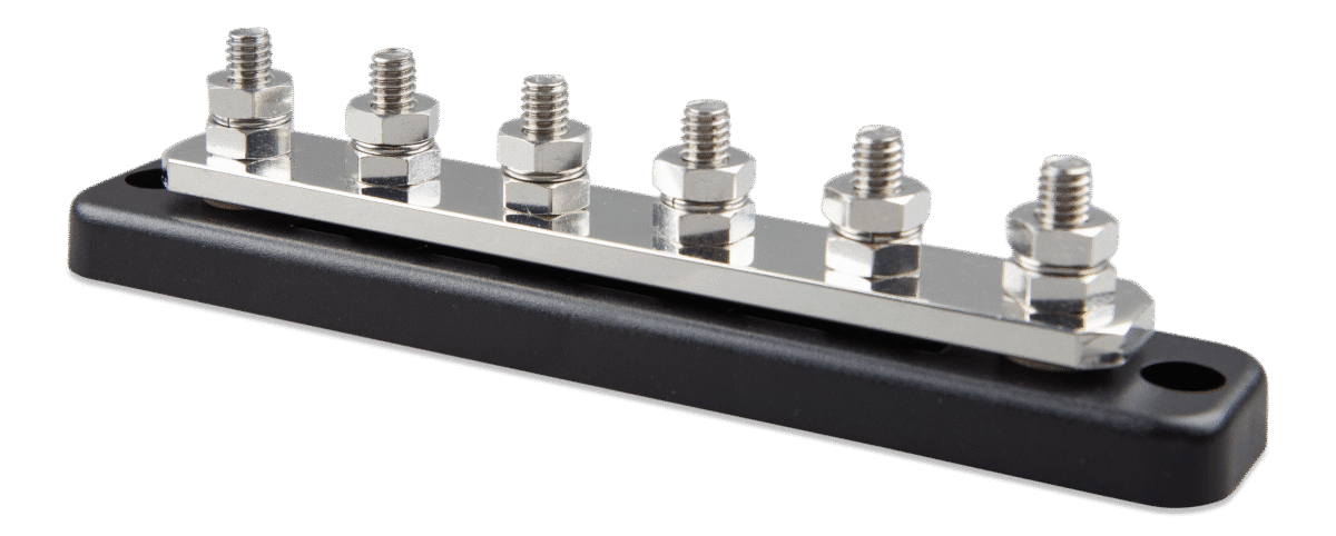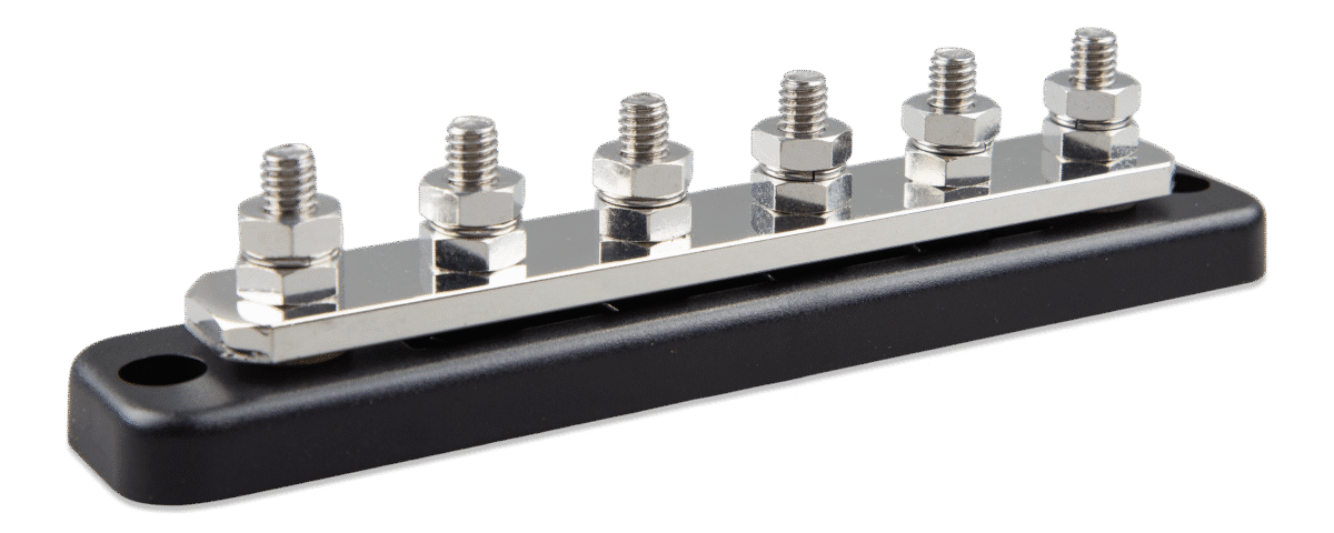 Rails worden gebruikt voor hoge verdeling van stroom en tegelijkertijd voorzien ze verbindingen voor accu’s en/of DC-materiaal.